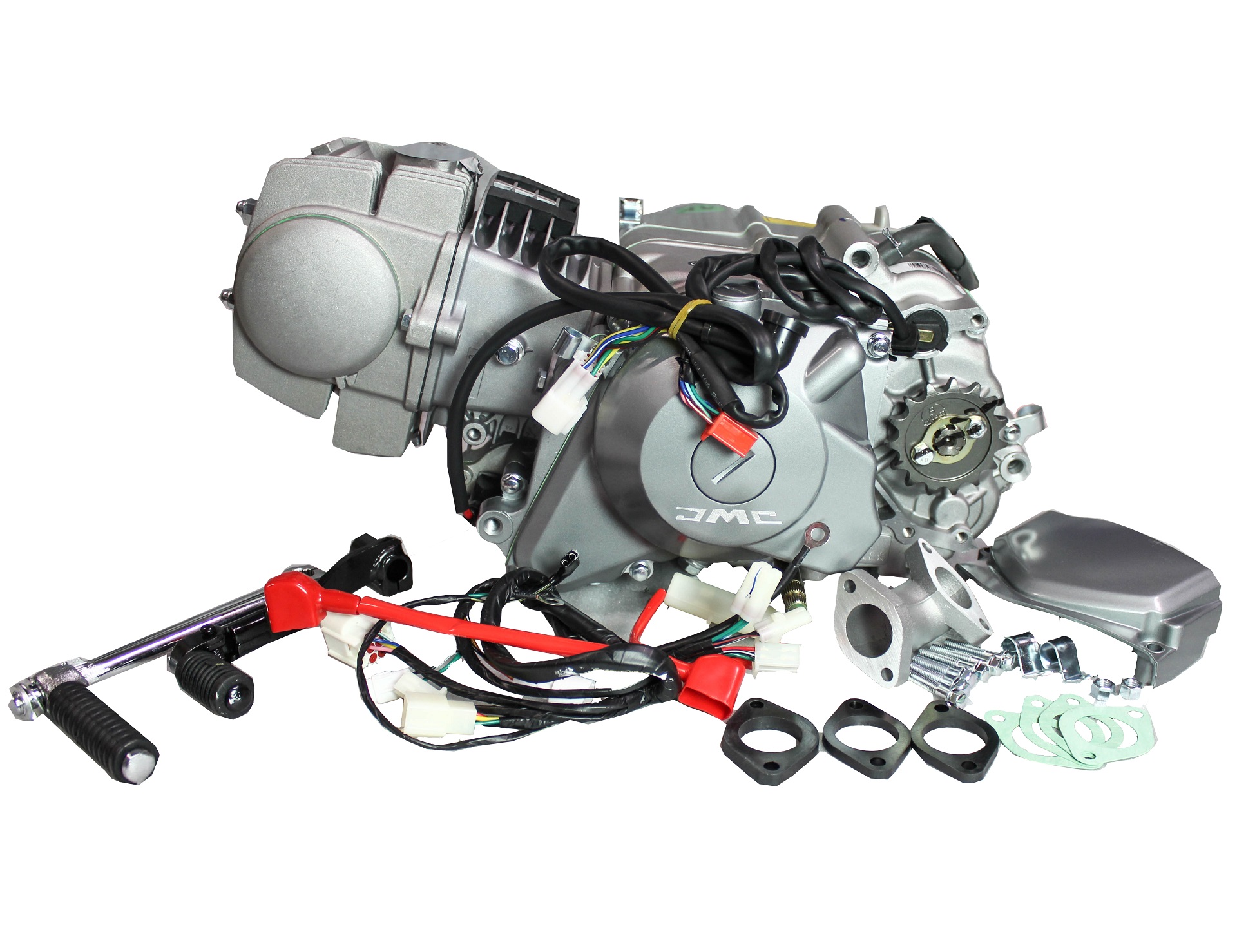 В комплекте: ножка кпп, кикстартер стандарт, впускной коллектор с прокладками и креплением, жгут электропроводки с коммутатором.